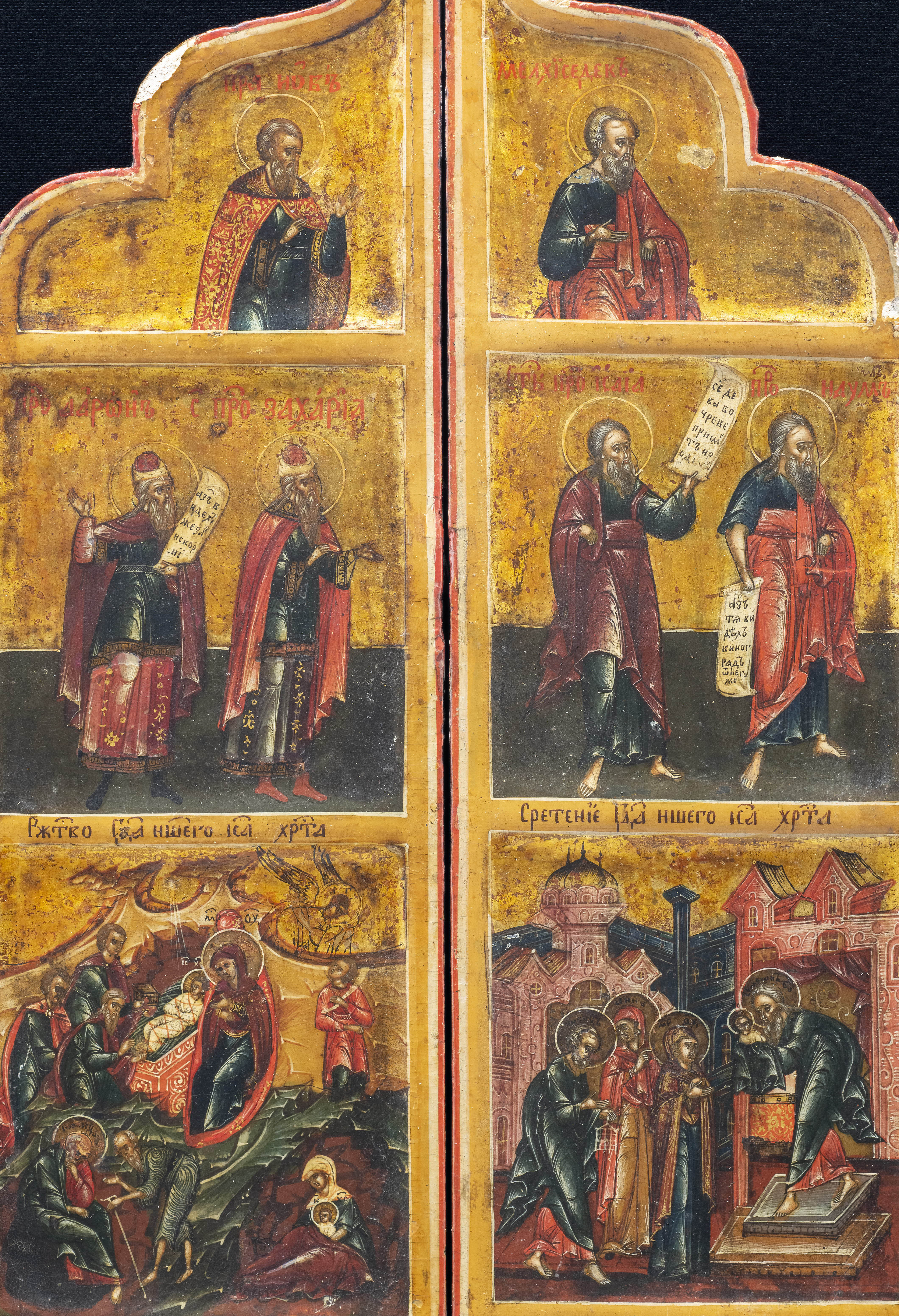 The Crucifixion of Christ, the Baptism of Christ, the Four Evangelists and other scenes., Russia, first half of the 18th century