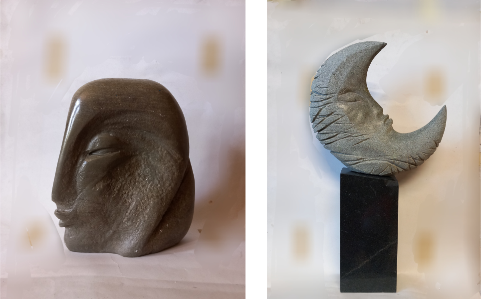 Behçet Danacı: Maiden, 2017, sculpture, river stone, 25 × 20 × 8 cm; Poetry in Moonlight, 2019, sculpture, stone, 50 × 26 × 6 cm